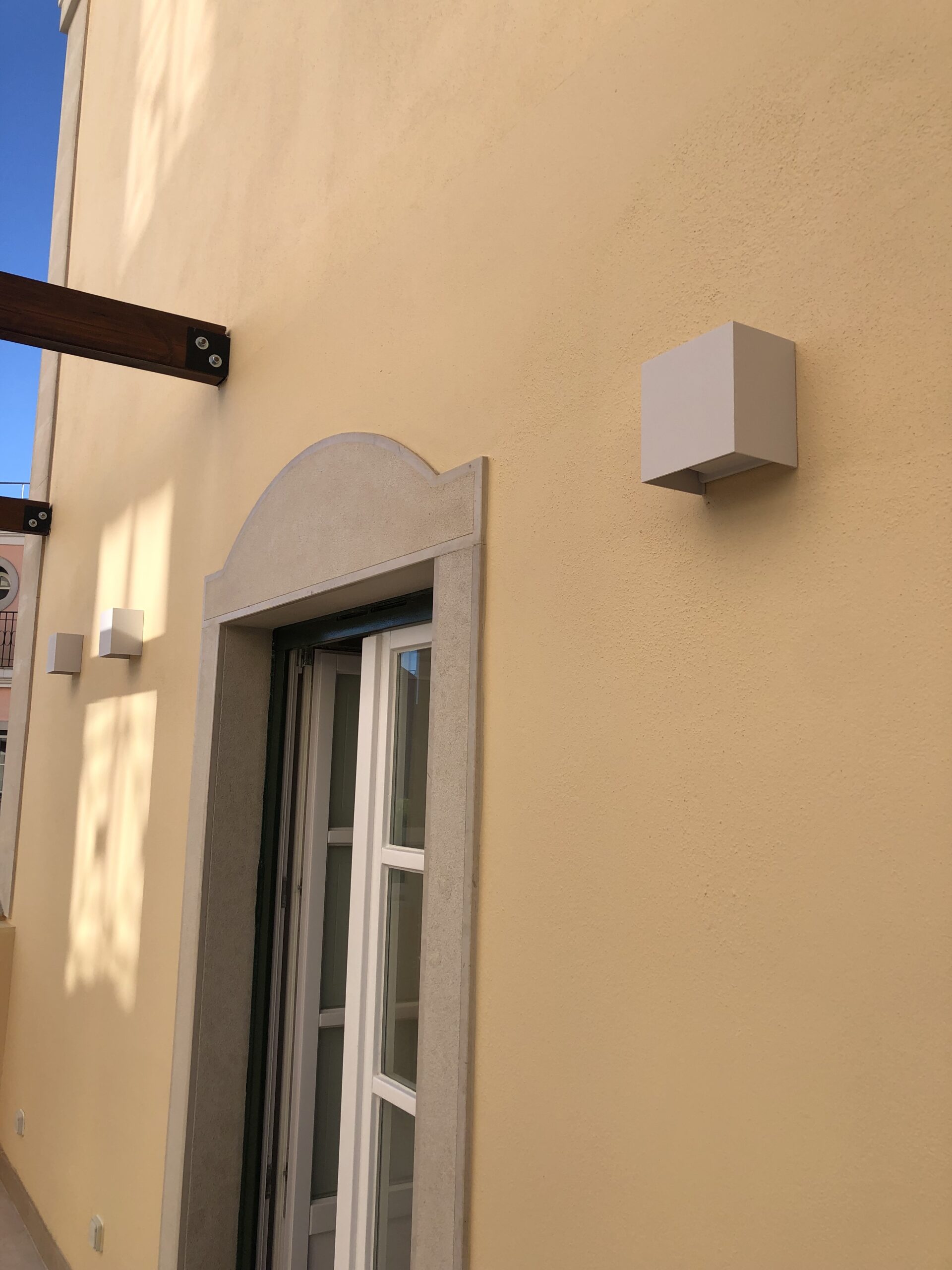 No exterior, a varanda ganhou nova vida com três cubos XL aplicados na fachada. Ademais, estes equipamentos criam um efeito luminoso em forma de triângulo, realçando as linhas arquitetónicas e conferindo uma assinatura visual distinta ao edifício.